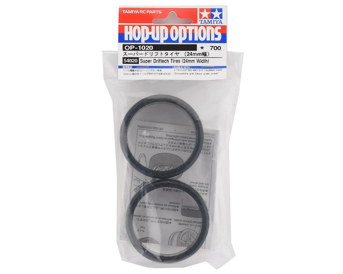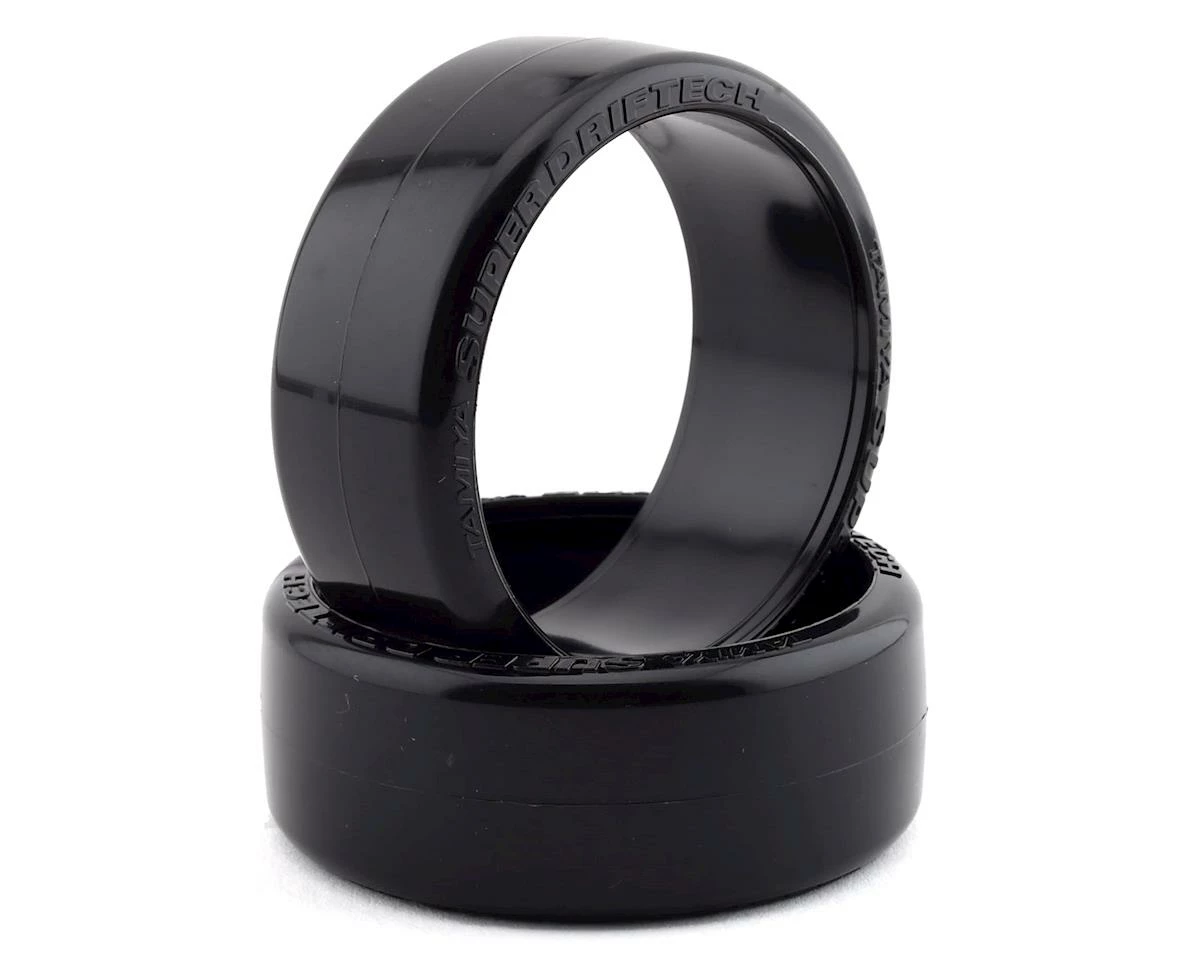 Tamiya 24mm Super Driftech Tires are perfect to help beginners get into this exciting category of R/C driving. Made from resin material, these tires offer less friction than previously released drift tires made from rubber, and can be used to drift on any surface from asphalt to carpet. Less friction also means longer tire life compared to rubber tires, making for less frequent tire changes. In addition, the 24mm width makes this tire compatible with all Tamiya touring car chassis, giving fans the freedom to drift whatever car they want.