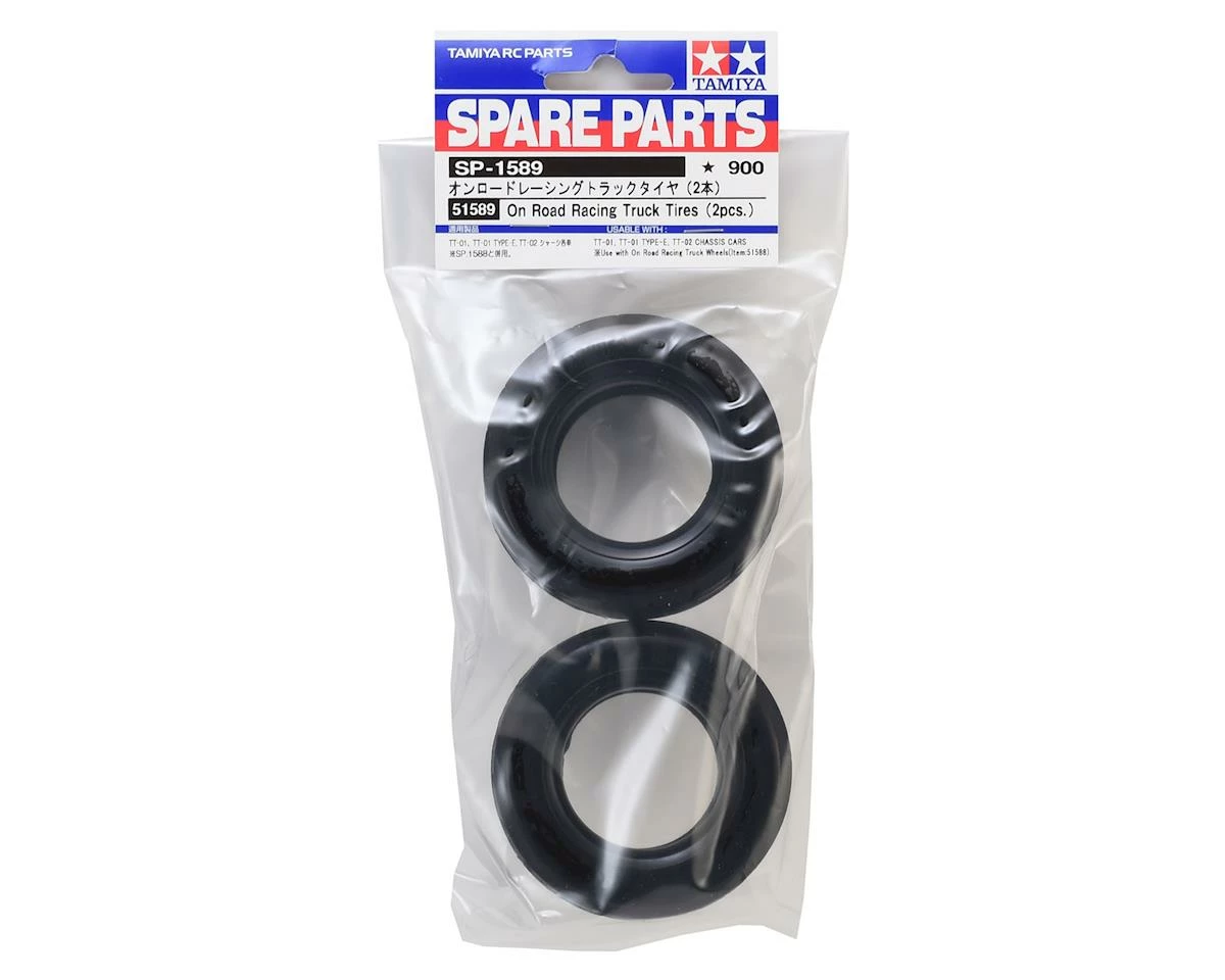 This is a pack of two replacement Tamiya Racing Semi Truck Tires. These are spares that come with the Team Hahn MAN TGS Semi-Truck.