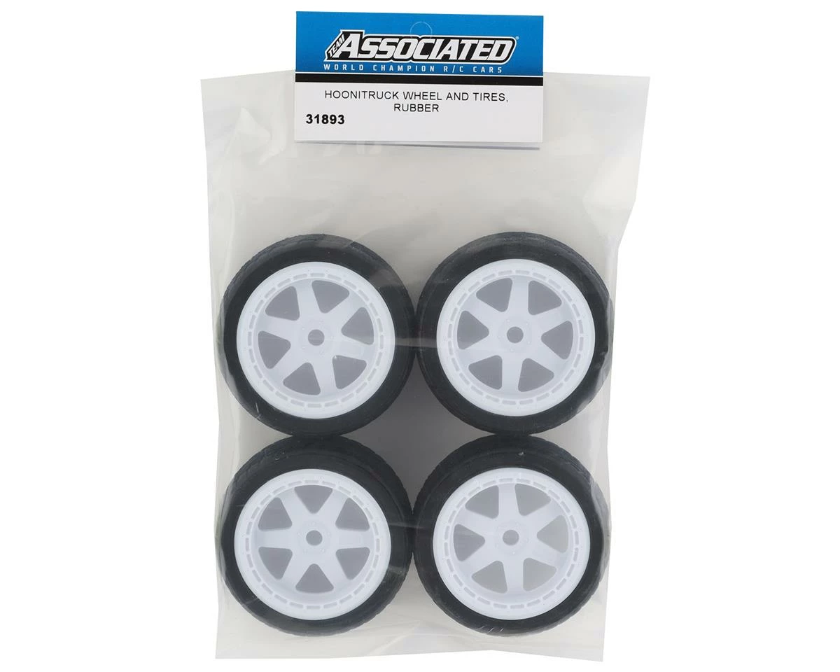 Team Associated Hoonitruck Pre-Mounted Touring Car Tires. These replacement tires are intended for the Team Associated Apex2 Hoonitruck. The tires are mounted on scale 43 wheels for the perfect look. Package includes four pre-mounted tires.