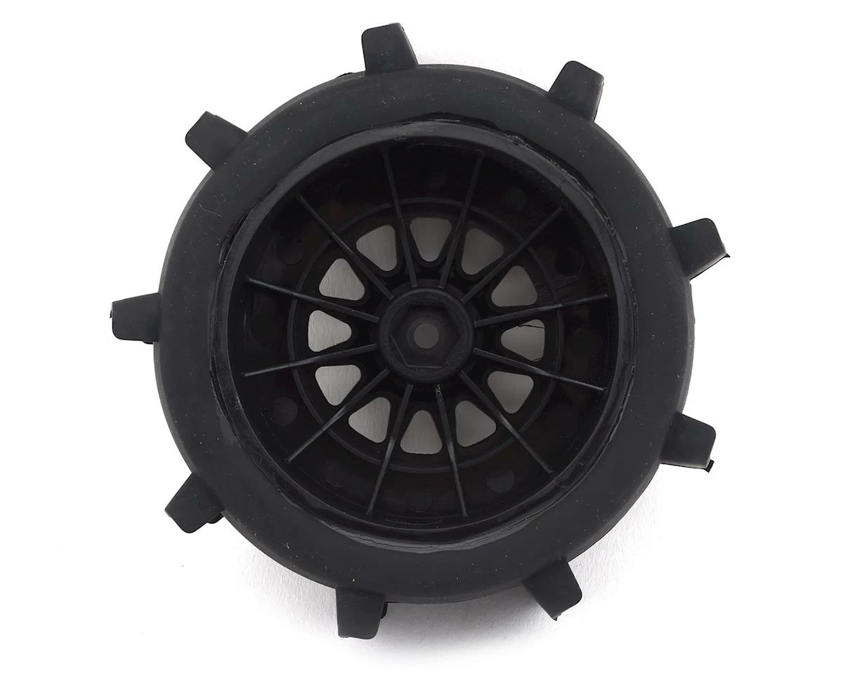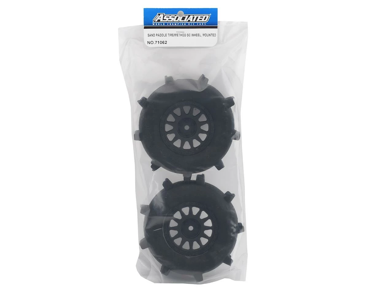 Team Associated Sand Paddle Pre-Mounted Rear Tires. These tires are made from a durable rubber compound that will perform well in the sand and snow, and have been premounted on Team Associated 12mm hex short course wheels, allowing compatibility with a variety of applications.Â