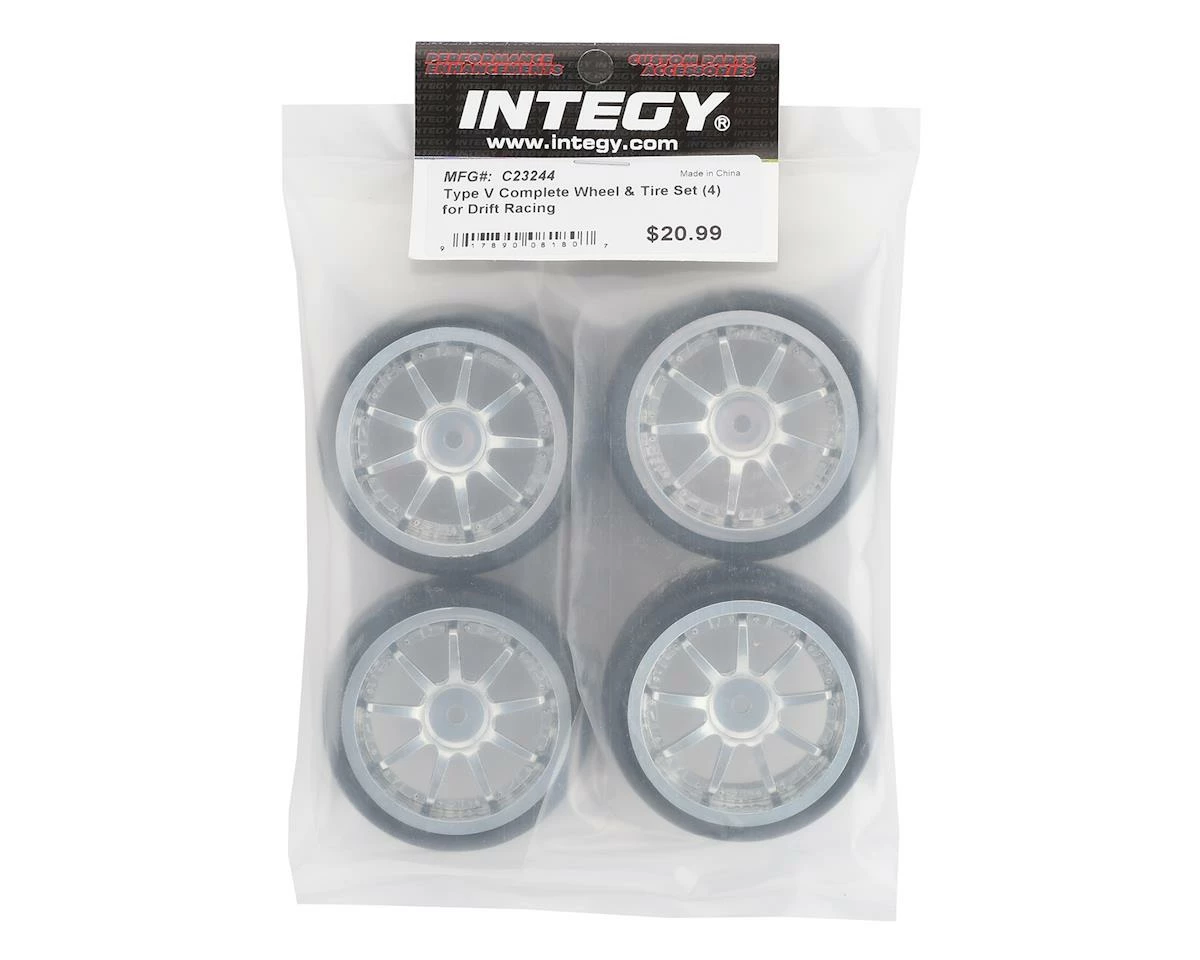 Integy Type V Drift Wheel & Tire Set. Package includes four pre-mounted drift tires on chrome wheels.Â