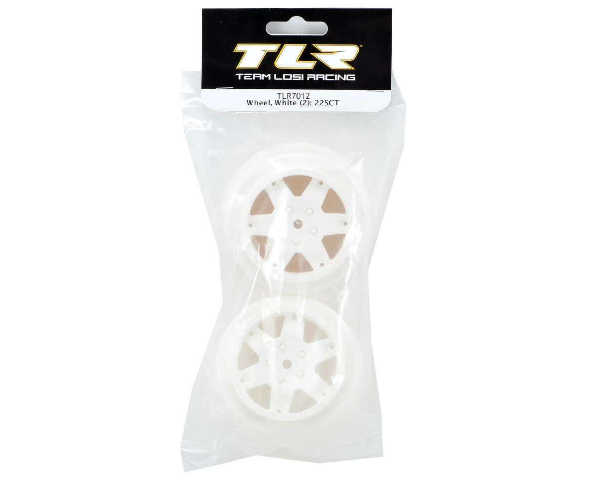 This is a pack of two optional Team Losi Racing White Wheels, and are intended for use with the Team Losi Racing 22SCT 1/10 scale short course truck.Â
