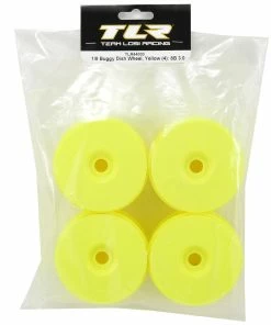 This is a pack of four yellow Team Losi Racing 1/8 Buggy Dish Wheels. These are the “race-inspired dome wheels” included with the 8IGHT 3.0 buggy, but are compatible with any Losi 1/8 buggy.