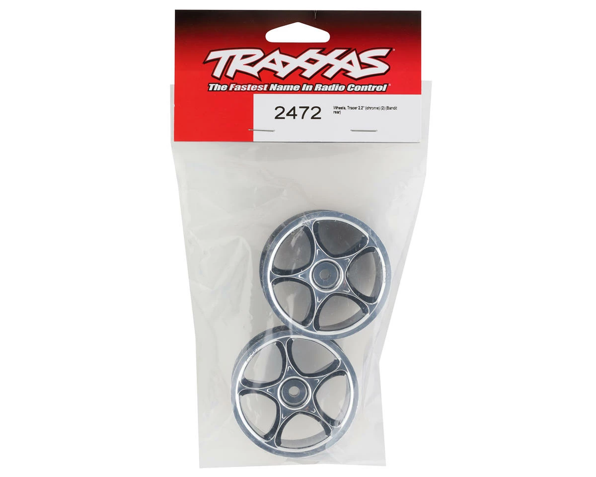 These 2.2″ wheels for Bandit fit Traxxas and other standard 2.2″ buggy tires. Tracer 2.2″ wheels are available in a shiny mirror-chrome or sinister black-chrome.
