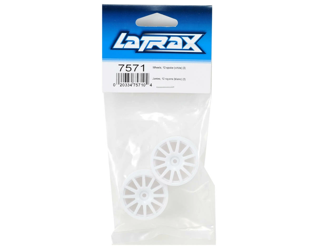 This is a pack of two replacement white LaTrax 12-Spoke Wheels.