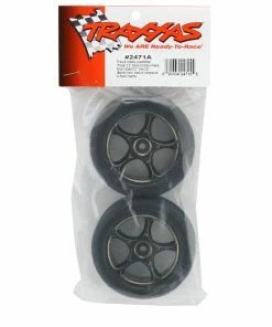 This is a pack of two Traxxas Alias Front Tires, mounted on Tracer 2.2″ Wheels. These are the stock tire included with the Traxxas Bandit and feature a classic rib tread pattern. Choose from a Black Chrome or Chrome finish.