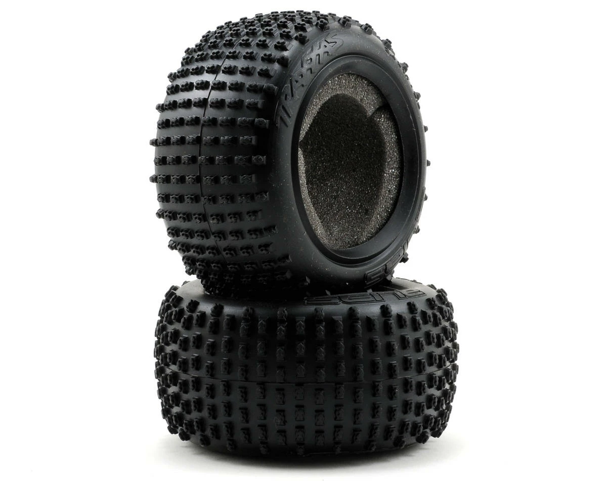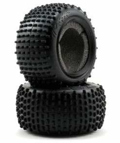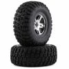 This is a set of two Traxxas Rear Alias Tires, pre-mounted on Tracer 2.2″ Wheels, and are intended for use with the Traxxas Bandit. Whether racing on a track or tearing across a back lot, Alias tires are the perfect choice. The Alias features a non-directional design for no-hassle, no-worry mounting. The Alias rear tires integrate a rounded carcass and dual pin design that steps-up to keep the tires firmly planted on extreme off-road terrain. This tire combination is ideal for use on grass, loamy dirt, sand, and any other loose surface. The Alias tire is molded in a super soft rubber compound that supplies exceptional grip on asphalt and other hard packed surfaces. The Alias is a versatile tire that is at home on the track or in the backyard. Choose from Chrome, or Black Chrome Tracer wheels.