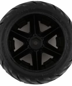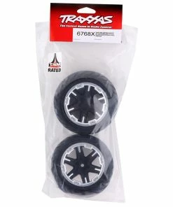 Traxxas Anaconda 2.8″ Pre-Mounted Tires w/RXT Electric Rear Wheels. Anaconda performance street tires feature a specially formulated tire compound providing a long lasting traction. These tires are mounted and pre-glued on tough RXT black chrome wheels. Molded-foam inserts coupled with the directional tread design provide a balanced feel for the ultimate high-speed on-road experience. These optional pre-mounts are intended for the rear of the Traxxas Rustler 2WD. Package includes two pre-mounted tires.