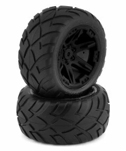 Traxxas Anaconda 2.8″ Pre-Mounted Tires w/RXT Electric Rear Wheels. Anaconda performance street tires feature a specially formulated tire compound providing a long lasting traction. These tires are mounted and pre-glued on tough RXT black wheels. Molded-foam inserts coupled with the directional tread design provide a balanced feel for the ultimate high-speed on-road experience. These optional pre-mounts are intended for the rear of the Traxxas Rustler 2WD. Package includes two pre-mounted tires.