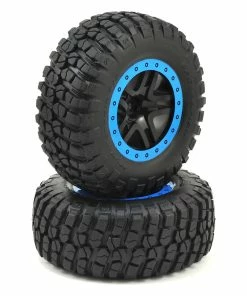 This is a set of two Traxxas BFGoodrich Mud-Terrain T/A KM2 Tires, Pre-Mounted on Split-Spoke SCT Wheels. These are intended for use on the front of the Traxxas Slash 2wd line of trucks. These are the fully licensed BFGoodrich Mud-Terrain T/A tires, and have been proven performers in TORC series competition. The distinctive tread design has been faithfully re-created, complete with sidewall lettering.