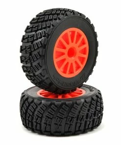 This is a pair of two replacement Traxxas Pre-Mounted BFGoodrich Rally Tires, mounted on Rally 12-Spoke Wheels. These tires are fully assembled, glued, include foam inserts and are ready for installation.