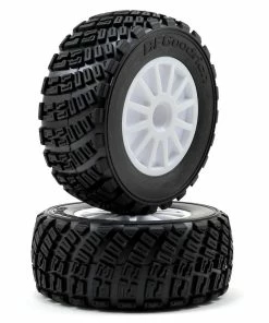 This is a pair of two replacement Traxxas Pre-Mounted BFGoodrich Rally Tires, mounted on Rally 12-Spoke Wheels. These tires are fully assembled, glued, include foam inserts and are ready for installation.