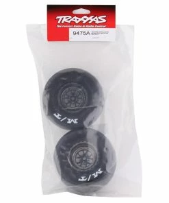 Traxxas Drag Slash Rear Pre-Mounted Tires with Weld Wheels and 12mm Hex. These ultra-wide Mickey Thompson ET Drag Slicks feature an innovative carcass design for massive traction off the line and down the track. The tires are mounted to the optional black and chrome, licensed Weld rear wheels and are intended for the Traxxas Drag Slash. Package includes two pre-mounted tires.