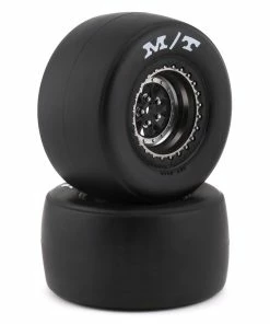 Traxxas Drag Slash Rear Pre-Mounted Tires with Weld Wheels and 12mm Hex. These ultra-wide Mickey Thompson ET Drag Slicks feature an innovative carcass design for massive traction off the line and down the track. The tires are mounted to the optional black and chrome, licensed Weld rear wheels and are intended for the Traxxas Drag Slash. Package includes two pre-mounted tires.