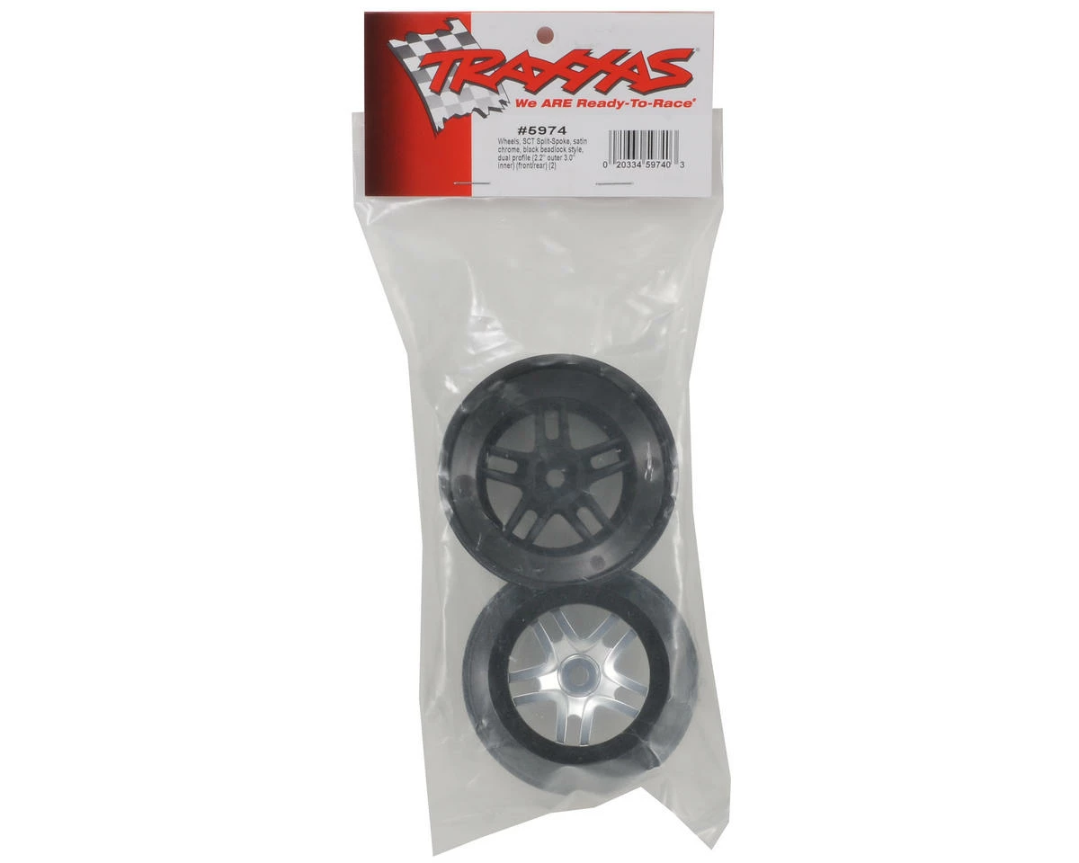 This is a set of two Traxxas 2.2/3.0 Dual Profile Split-Spoke SCT Beadlock Type Wheels and are intended for use with the Traxxas Slayer Pro short course truck.Â
