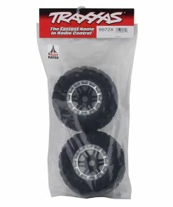 This is an optional set of two Traxxas Maxx All-Terrain Pre-Mounted Tires, intended for use with the Maxx 1/10 Brushless RTR 4WD Monster Truck. These Maxx MT tires come premounted and glues on beadlock style wheels, available in multiple colors.