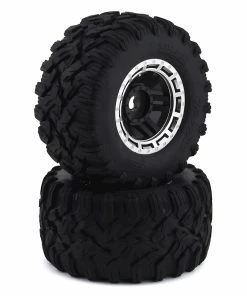 This is an optional set of two Traxxas Maxx All-Terrain Pre-Mounted Tires, intended for use with the Maxx 1/10 Brushless RTR 4WD Monster Truck. These Maxx MT tires come premounted and glues on beadlock style wheels, available in multiple colors.