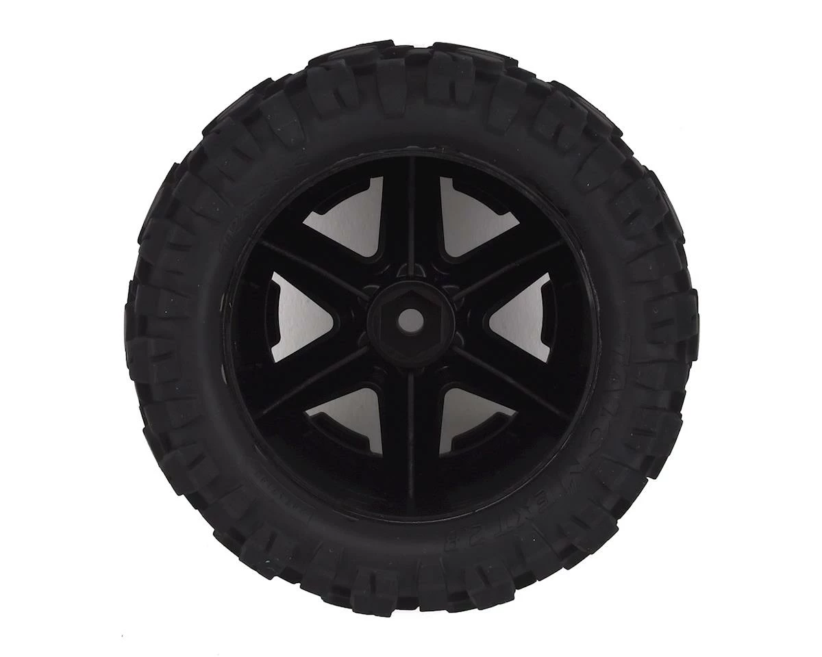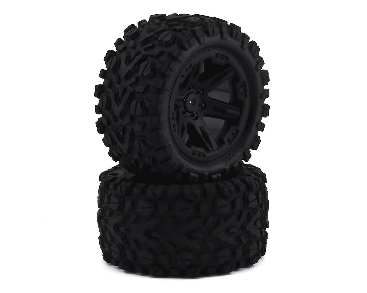 Traxxas Talon EXT 2.8″ Pre-Mounted Tires. These tires are pre-mounted to black 2wd electric rear offset RXT wheels. These are the TSM rated tires included with the Rustler 4×4.