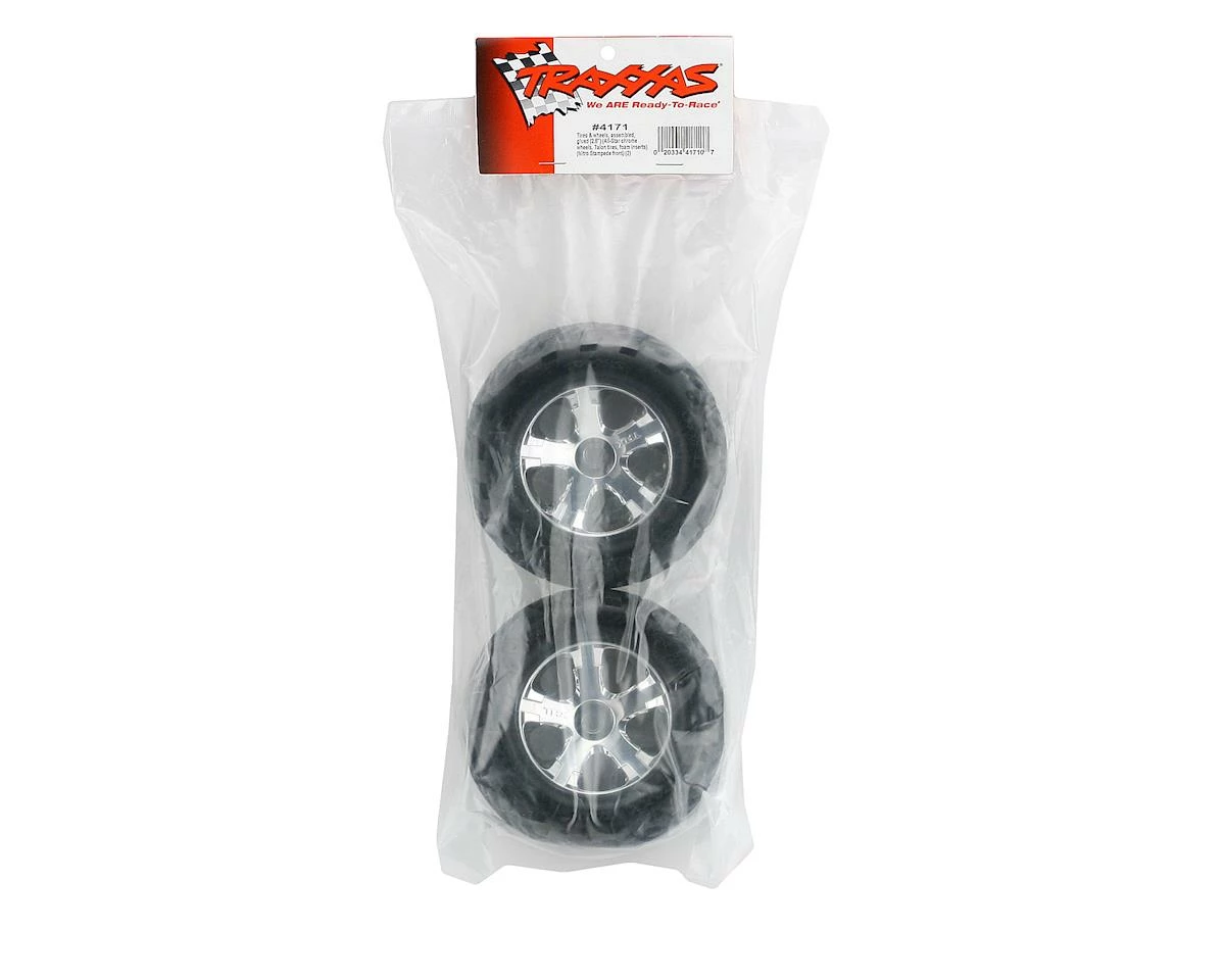 - Talon Tires (with foam inserts) pre-glued on 2.8″ All-Star Mirror Chrome Wheels