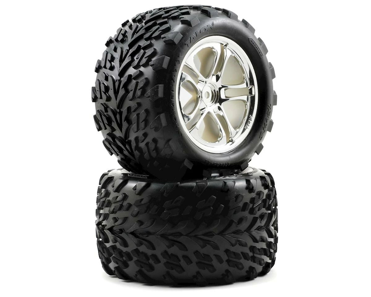 Tires & wheels, assembled, glued (SS (Split Spoke) chrome wheels, Talon tires, foam inserts) (2) (fits Maxx/Revo series)