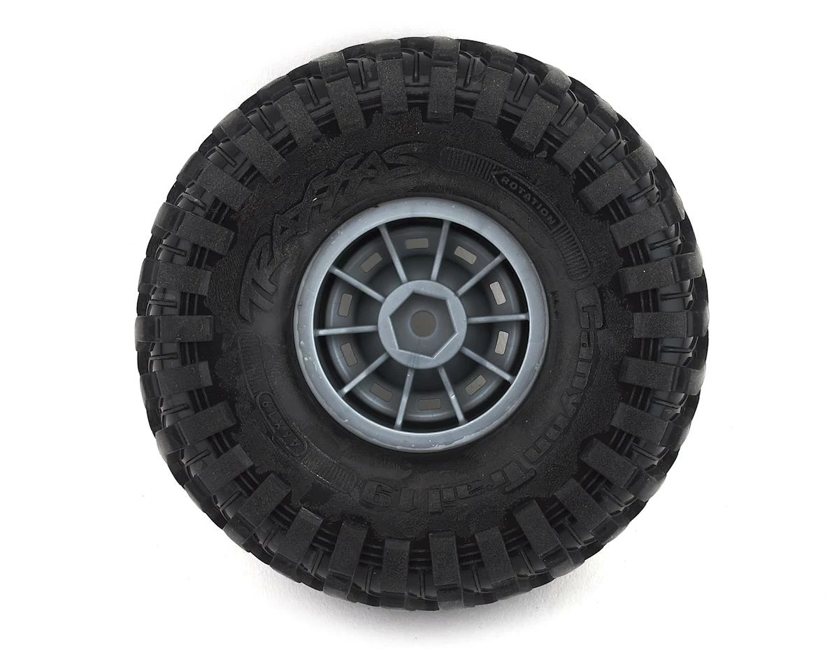 This is a set of Traxxas TRX-4 Blazer Canyon Trail 1.9″ Crawler Tires, Pre-Mounted on grey and chrome colored Blazer wheels with a 12mm hex. These tires are made from a super-soft and grippy S1 compound and fitted with tuned foam inserts while the 12mm hex makes these TrX-4 wheels compatible with a variety of 1.9 class trucks. These are intended for use as an replacement part for the TRX-4 1979 Chevrolet Blazer and require the Traxxas TRX-4 Extended Portal Drive Stub Axle Set.Â