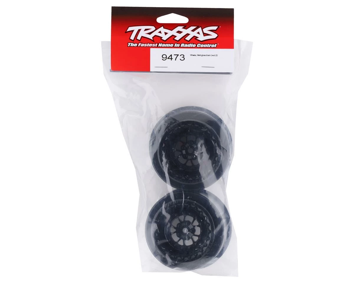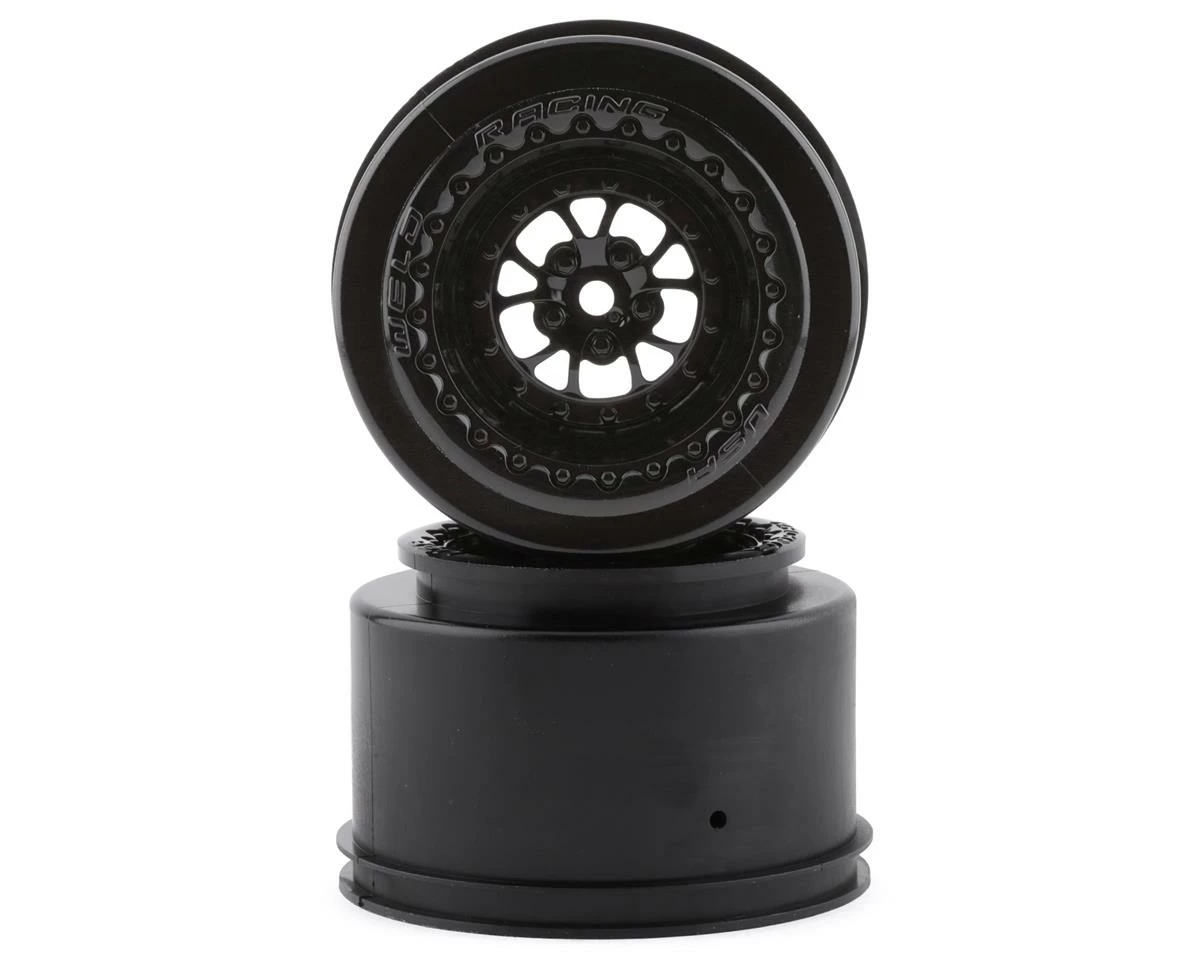 Traxxas Weld 2.2/3.0 Drag Racing Rear Wheels w/12mm Hex. Package includes two black rear wheels intended for the Traxxas Drag Slash.