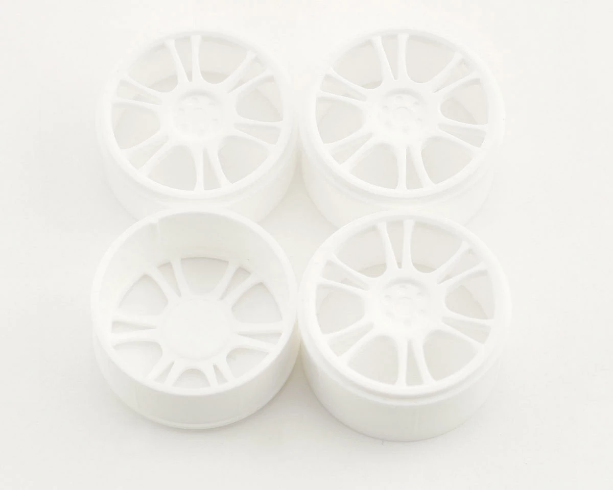 This is a set of four replacement wheels for the XRAY M18 1/18th scale touring car. Includes two front wheels, and two rear wheels.