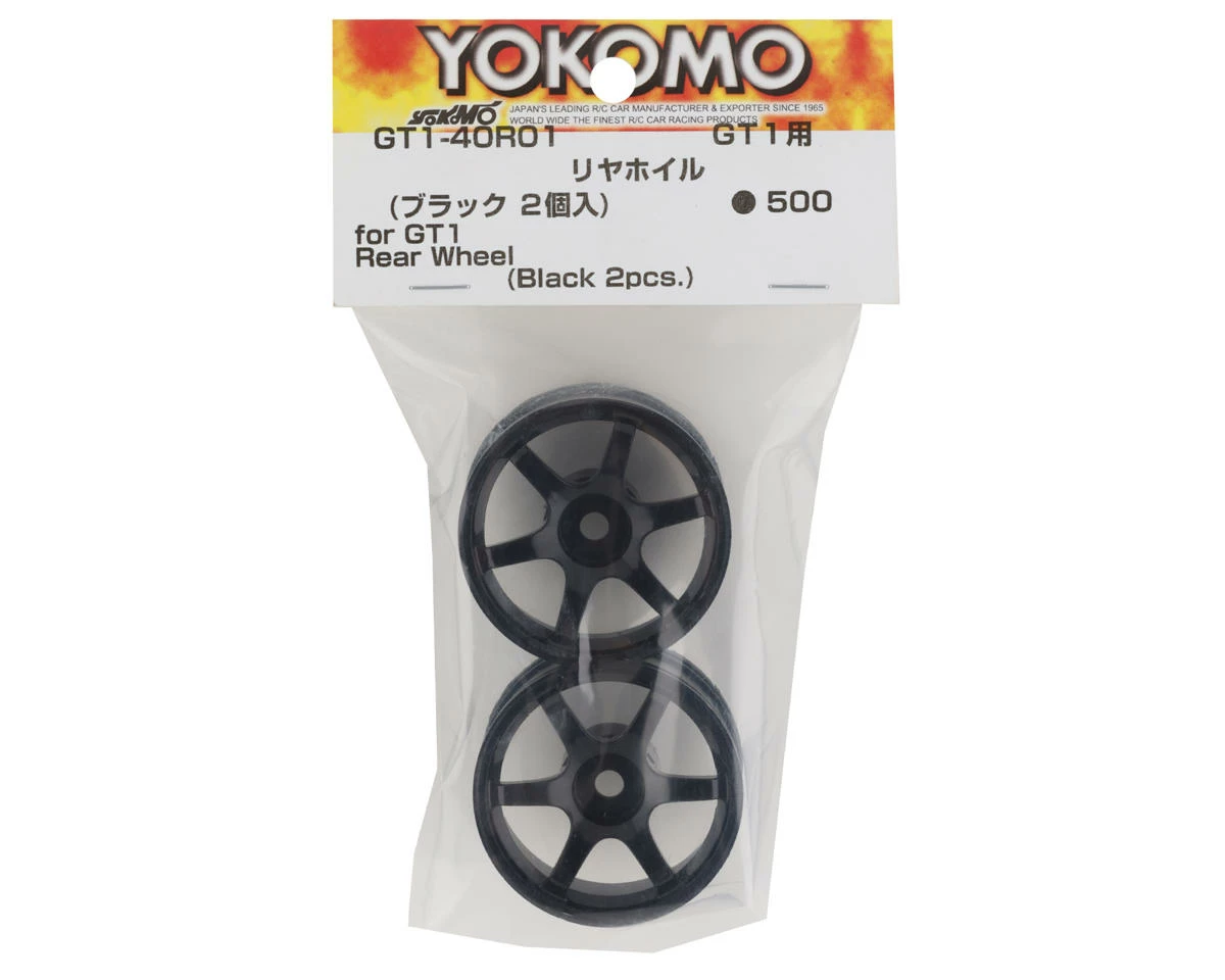 Yokomo GT1 Rear Wheel. These are a replacement intended for the Yokomo GT1 Pan car. Package includes two black rear wheels.
